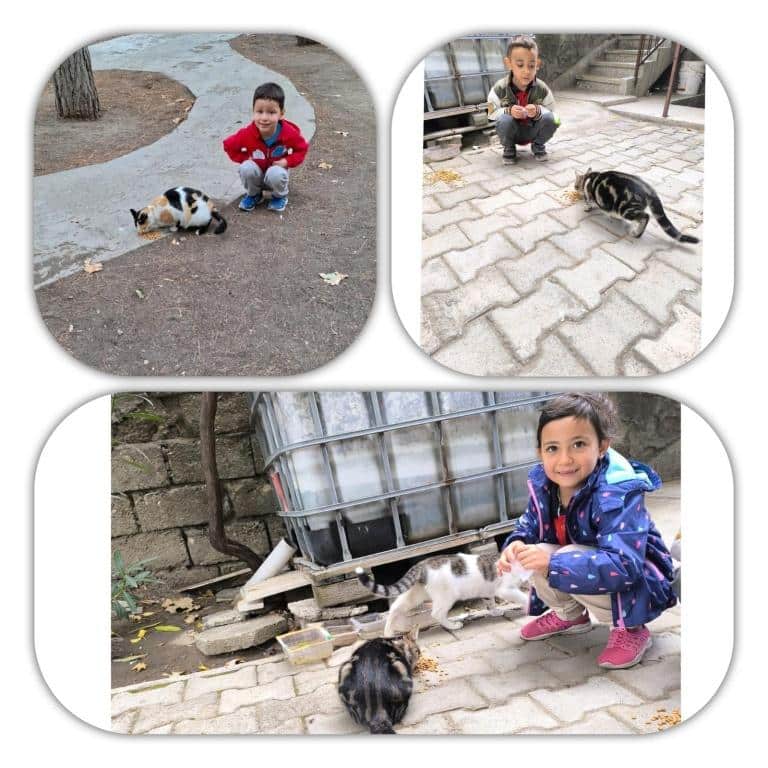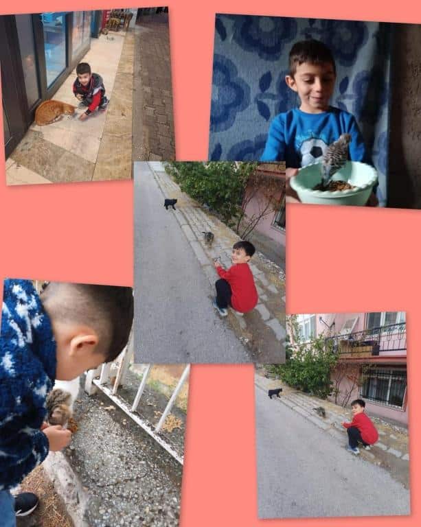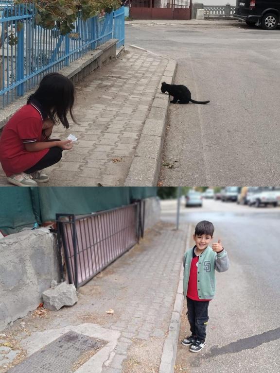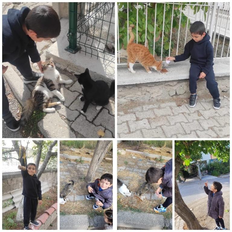 4 Ekim Hayvanları Koruma Günü kapsamında Yedişehitler Ortaokulu ana sınıfı öğrencilerimiz, öğretmenlerinin verdiği yemlerle mahallelerindeki kedileri beslediler.